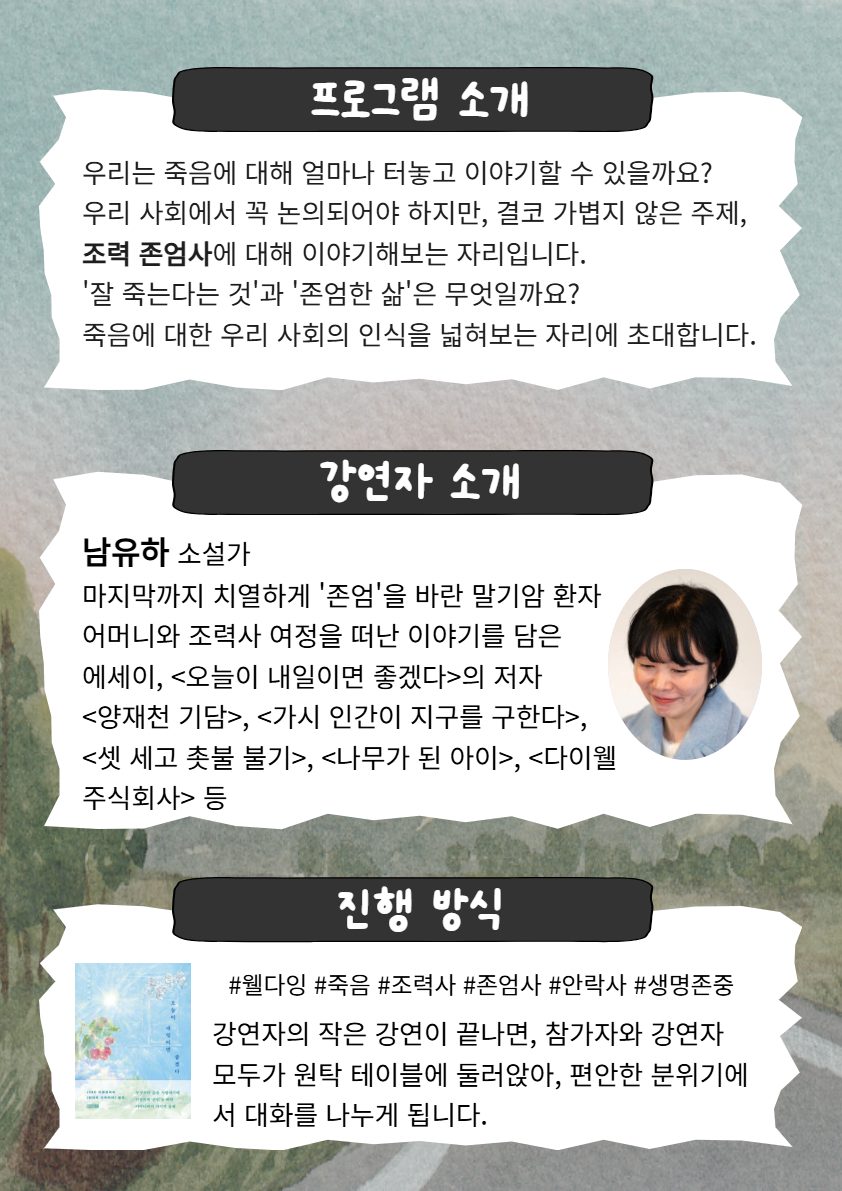 죽음에 대한 우리 사회의 인식을 넓혀보는 자리에 여러분을 초대합니다.