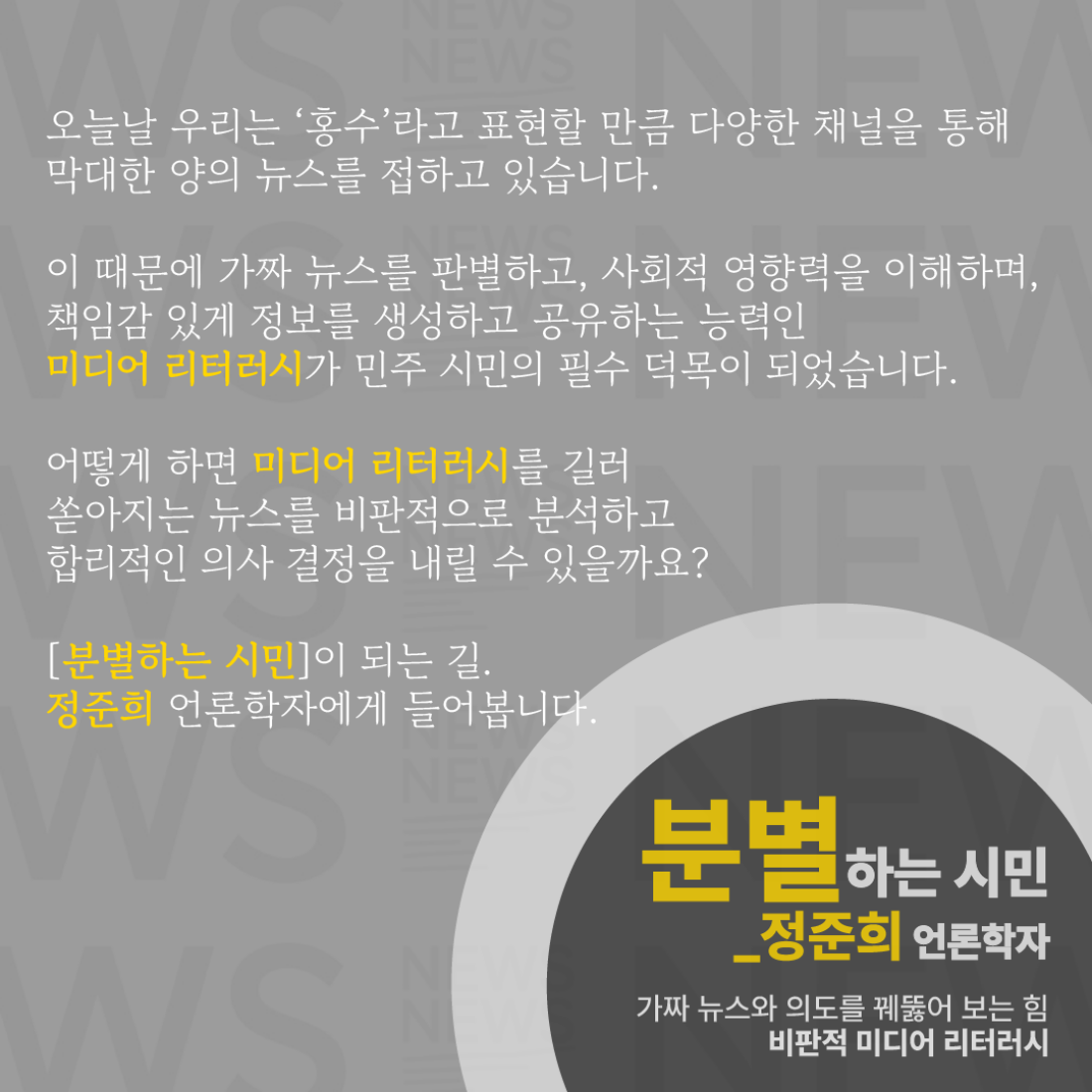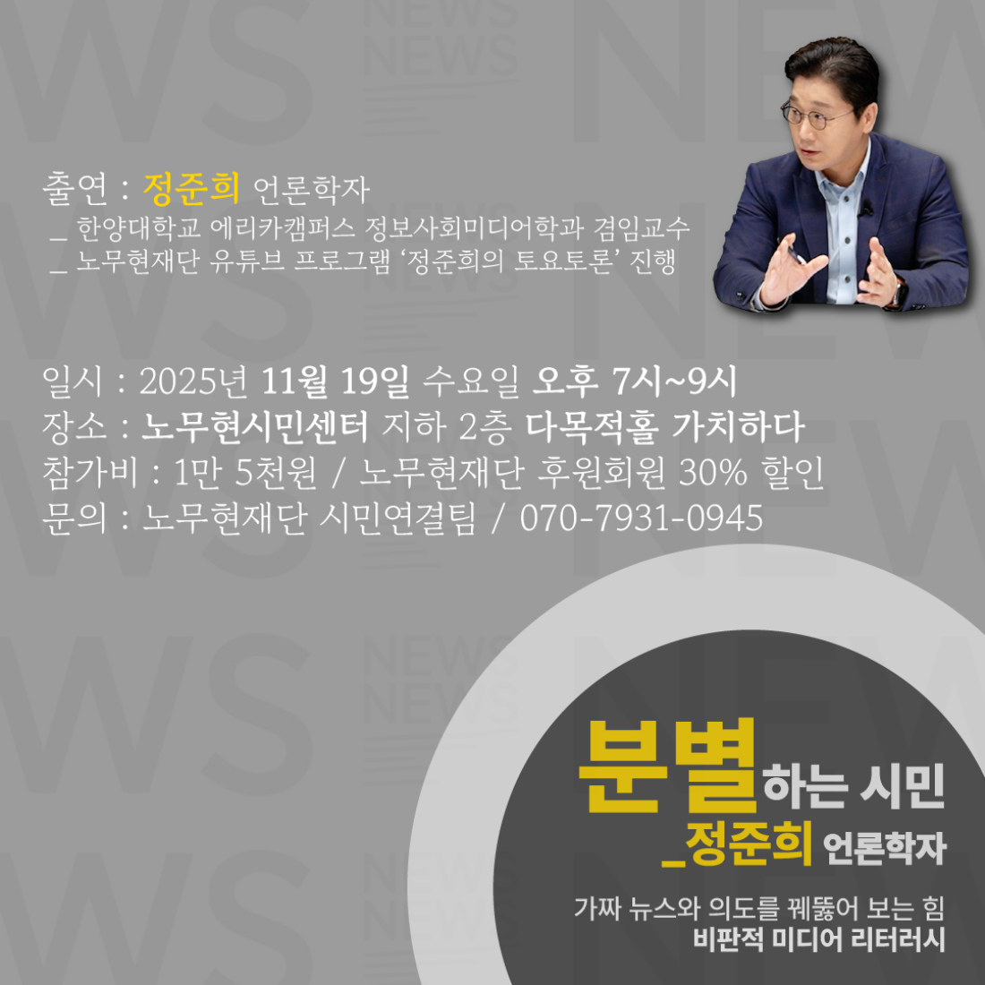[센터|시민|오프라인] [노무현시민센터 명사특강 : ㅁㅁ하는 시민] 분별하는 시민_정준희 언론학자 (2025.11.19. ~ 2025.11.19.)
