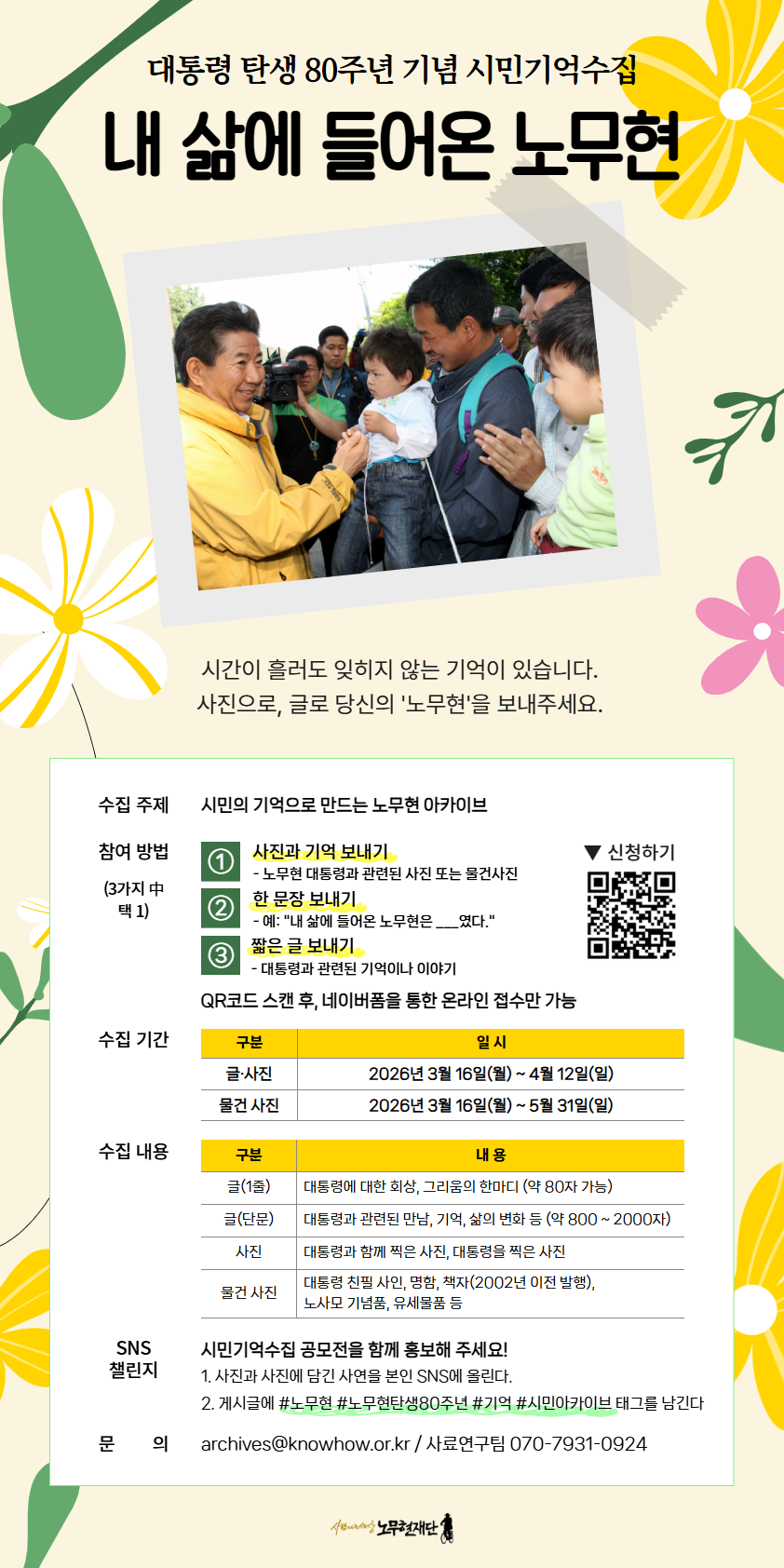 해당 게시글에 <#노무현 #노무현탄생80주년 #기억 #시민아카이브> 4개 해시 태그를 필수로 남긴다.