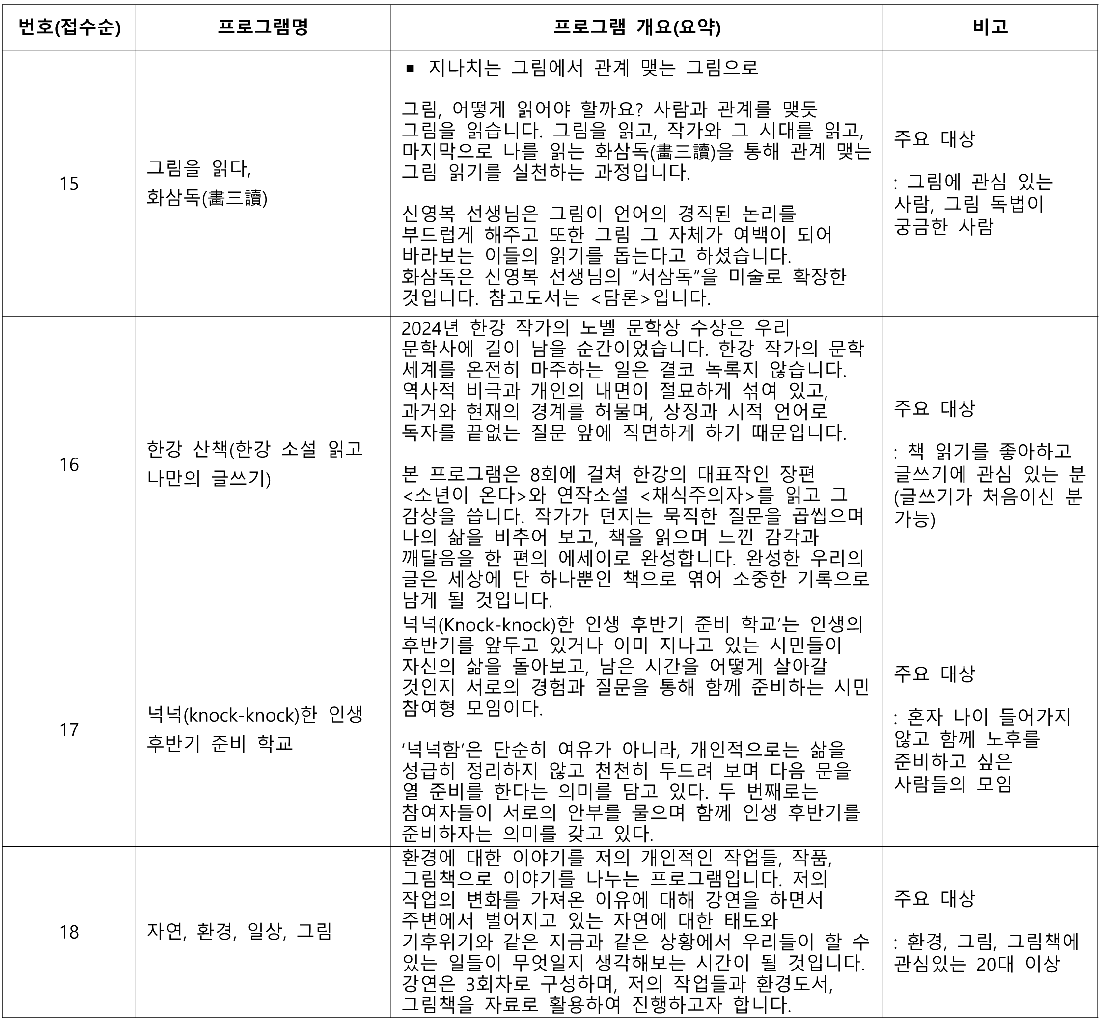많은 분들의 관심과 참여 속에 무려 18개의 프로그램 제안이 들어왔습니다.