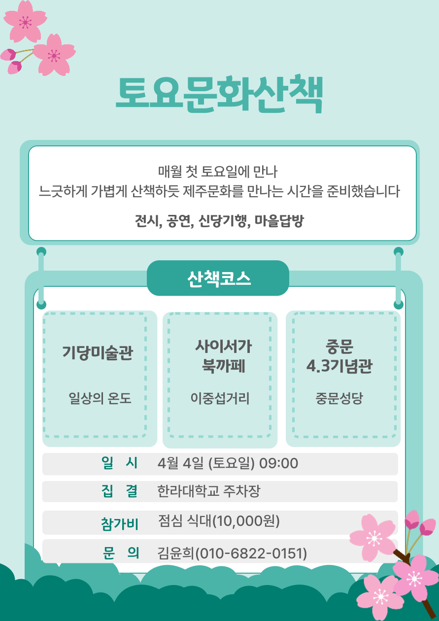 4월 첫 토요문화산책은 봄도 만날 겸 서귀포로 가보려 합니다.