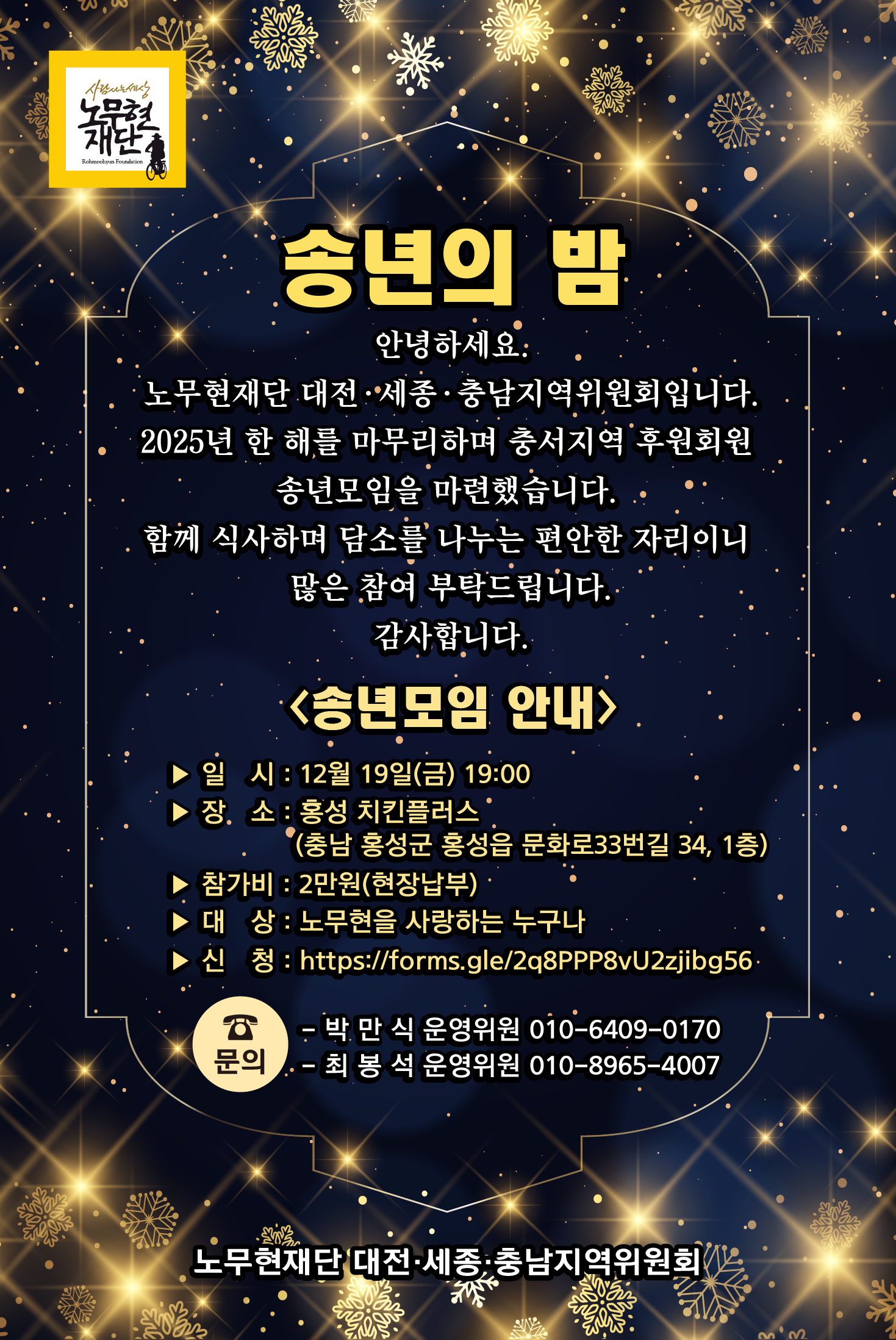 충서지역(홍성, 예산, 서산, 당진, 태안, 보령, 청양) 송년모임을 진행합니다.