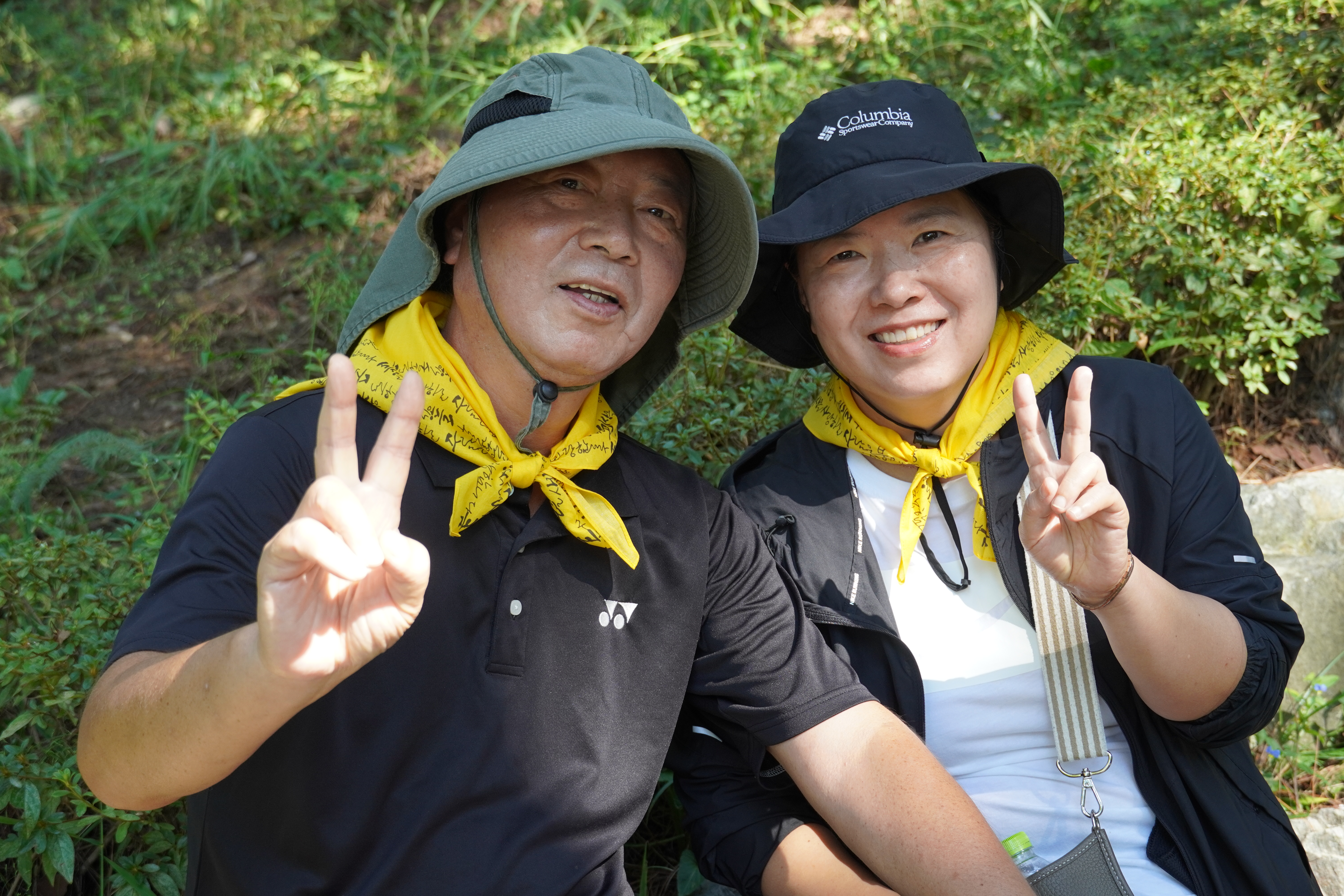 같은 모자와 노란색 예쁜 손수건을 목에 두르고 함께 여정을 시작합니다!
